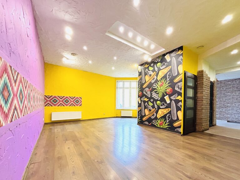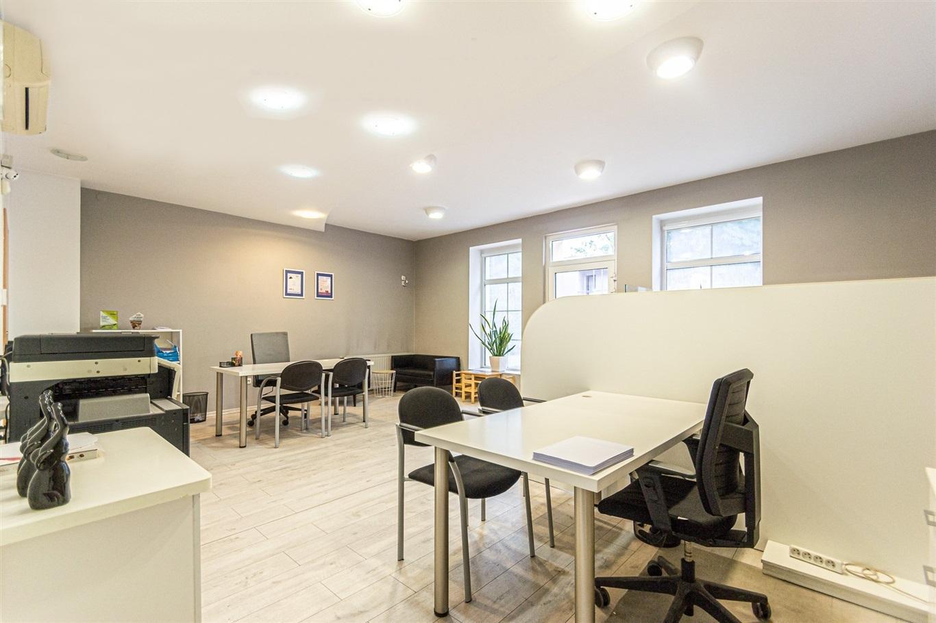 Lokal o powierzchni 57,70 m2 składa się z przestronnej sali głównej (37,33 m2), małej sali/pomieszczenia konferencyjnego (8,76 m2), kuchni z pomieszczeniem socjalnym (7,56 m2) oraz łazienki z WC (1,25 m2).