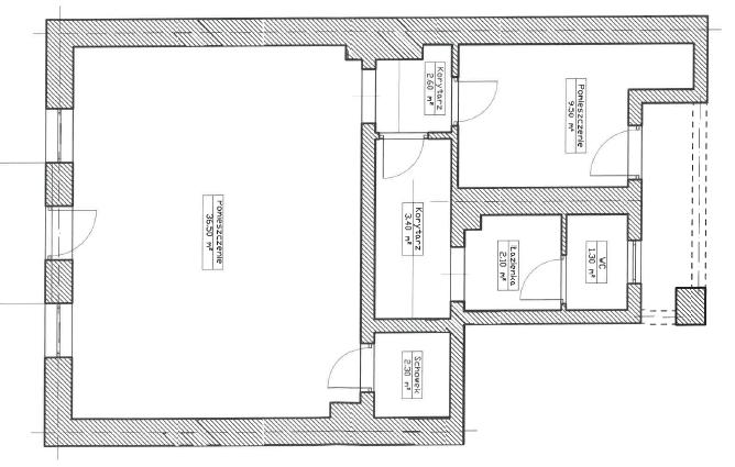 Sala Główna (37,33 m2): Przestronna przestrzeń idealna na działalność handlową, biurową czy usługową.
