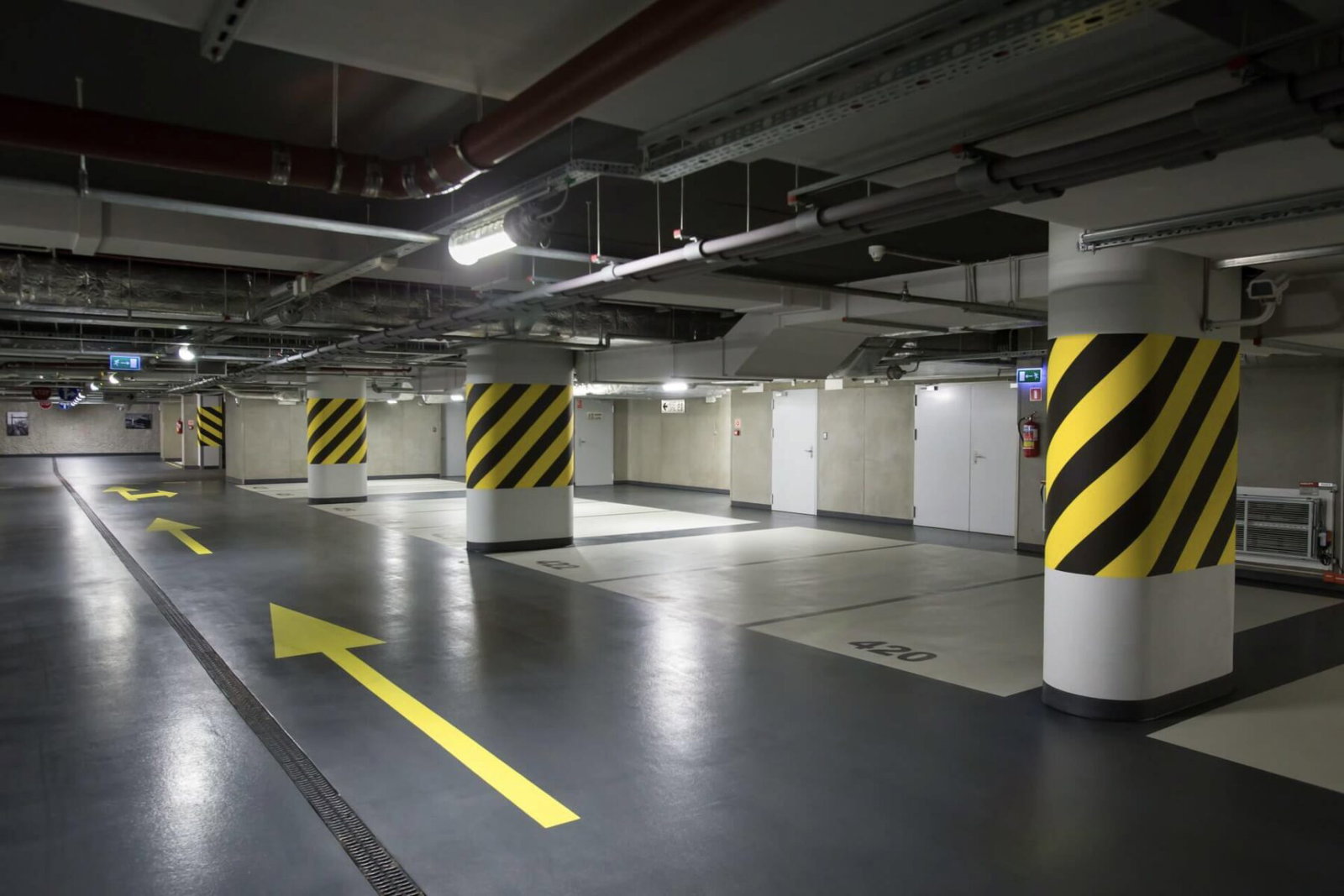 Parking podziemny, parking rowerowy w garażu.