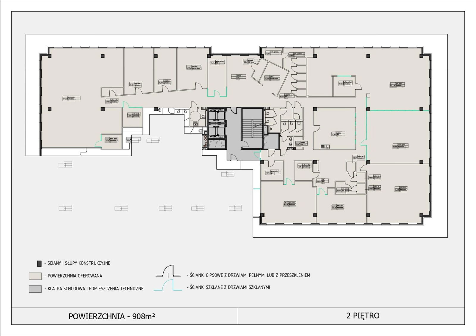 Biuro ma powierzchnię 908 m2, co daje sporo przestrzeni do aranżacji według własnych potrzeb.