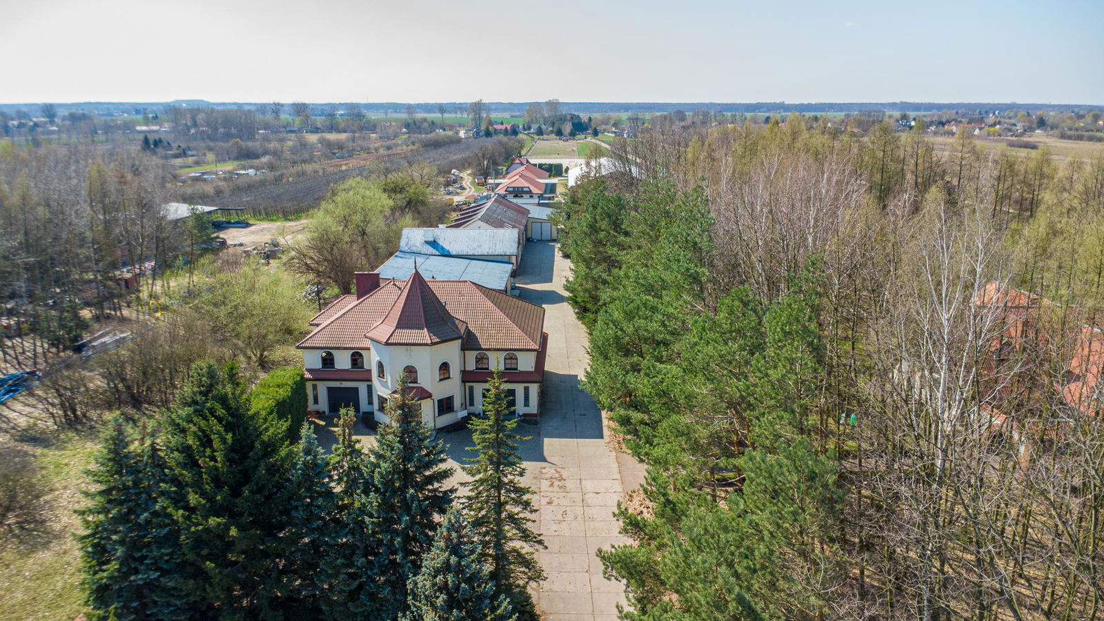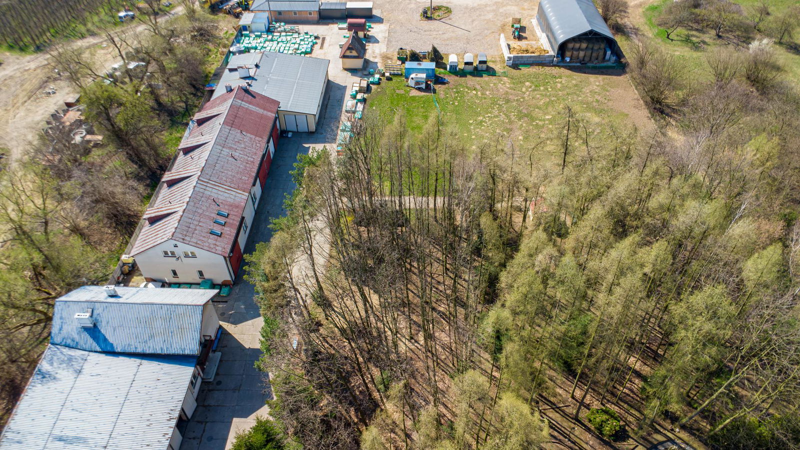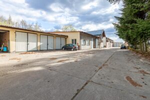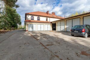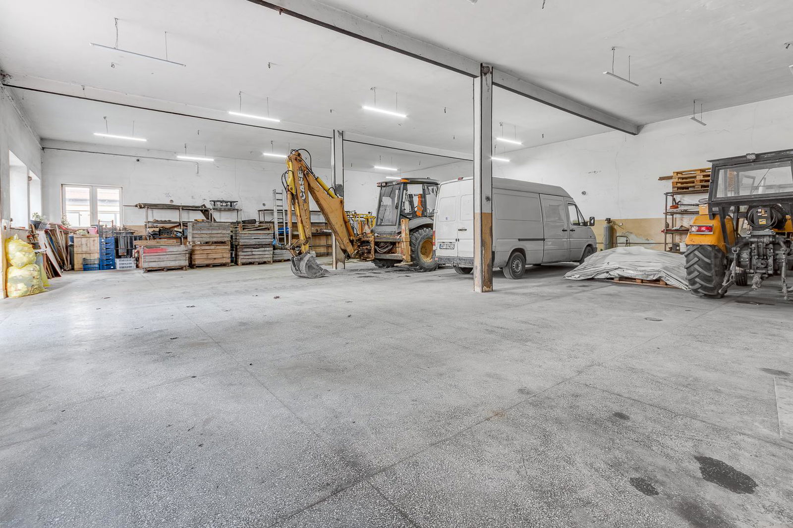 - Hala o powierzchni 1127 m², w której mieszczą się garaże, warsztat oraz przestrzeń magazynowa i produkcyjna.