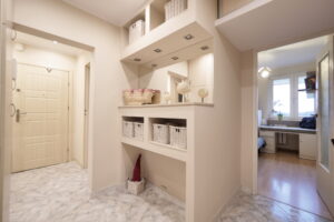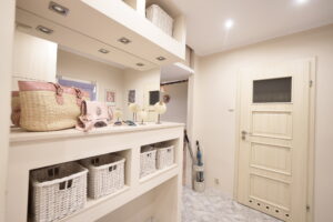 -dwa funkcjonalne przedpokoje z miejscem na przechowywanie.