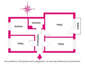 Mieszkanie ma powierzchnię 48,90 m2 i składa się z trzech oddzielnych pokoi, kuchni, łazienki z WC oraz przedpokoju.