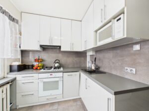 - oddzielna kuchnia z pełnym wyposażeniem (lodówka, piekarnik, zmywarka…)