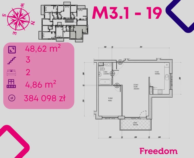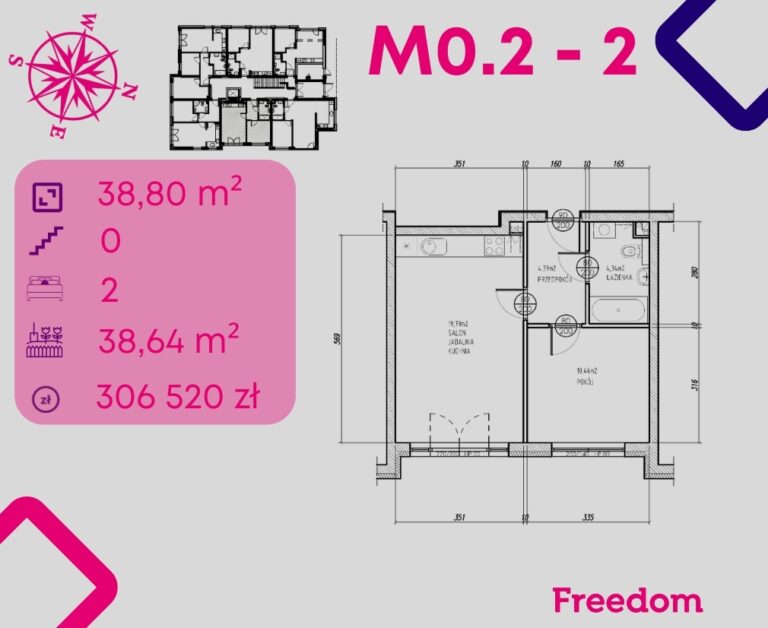 Największą zaletą całej inwestycji jest fakt, iż mieszkania są przygotowane i dostępne są od ręki. Umożliwia to wejście do każdego z mieszkań i zapoznania się na żywo z ich rozkładem, wielkością i stanem wykonania. Nie kupuj kota w worku! Lista dostępnych lokali oraz rzuty dostępne w biurze Freedom przy ul. 1 Maja 22/3.