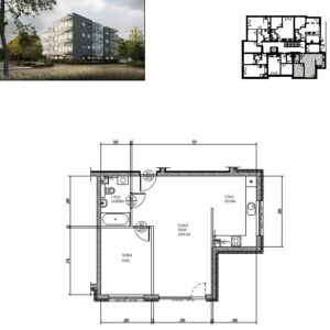 Mieszkanie o powierzchni 49,37 m² składa się z salonu z aneksem kuchennym, łazienki, przedpokoju oraz sypialni. Dodatkowo, z mieszkania można wyjść do indywidualnego ogródka o powierzchni 38,67 m².