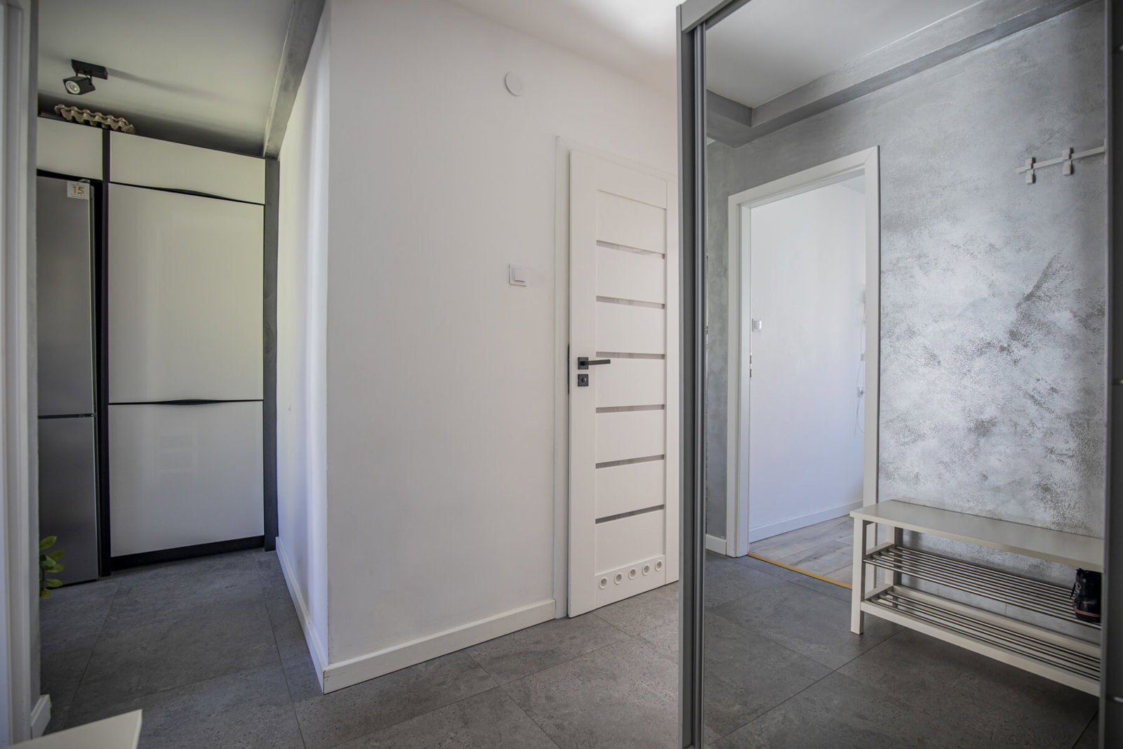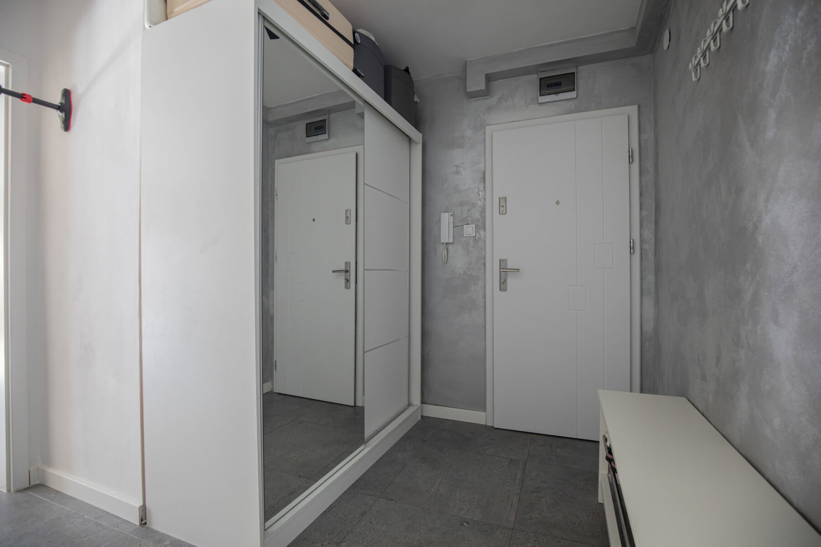 - Przedpokój z szafą w zabudowie zapewniającą mnóstwo miejsca do przechowywania.