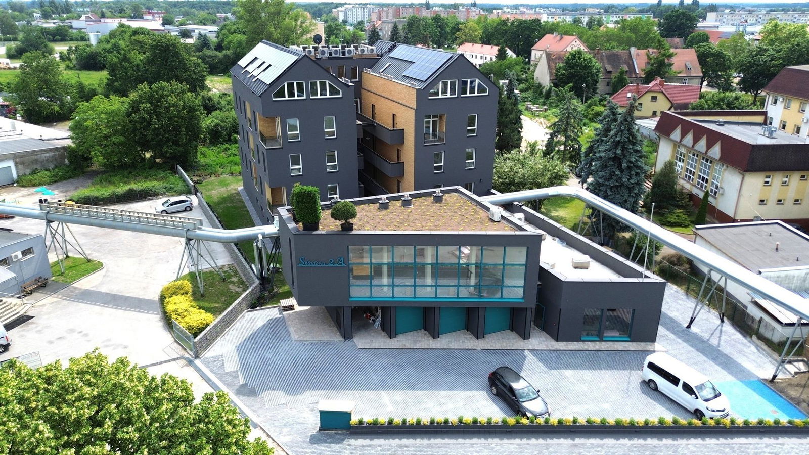 Należy zaznaczyć, że lokalizacja przy ul. Składowej, ze względu na bliskość terenów przemysłowych, charakteryzuje się dynamicznym otoczeniem. Z niektórych mieszkań rozciąga się widok na obiekty przemysłowe. Projektant zadbał jednak o to, aby mimo sąsiedztwa, mieszkańcy cieszyli się spokojem i wysokim komfortem życia, dzięki zastosowaniu nowoczesnych rozwiązań budowlanych i starannej aranżacji zieleni.