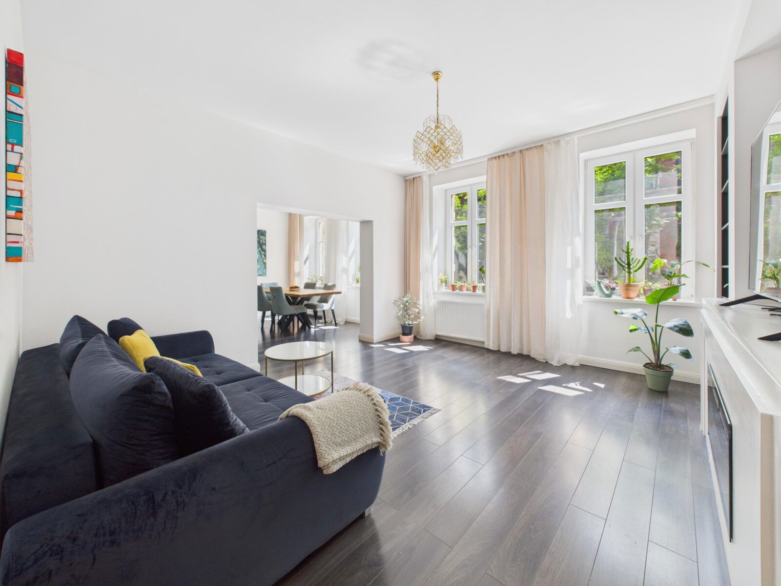 Lokal składa się z czterech przestronnych pokoi, otwartej kuchni, łazienki oraz przedpokoju. Jest w pełni wykończony, starannie urządzony i gotowy do zamieszkania – bez konieczności ponoszenia dodatkowych nakładów.