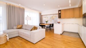 - Podłogi w pomieszczeniach: Terakota, Deska podłogowa