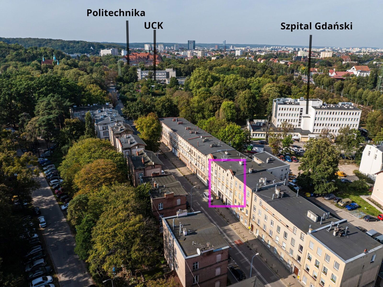 Mieszkanie znajduje się w sercu Wrzeszcza, blisko uczelni, takich jak Politechnika Gdańska i Uniwersytet Gdański. W okolicy znajdziesz również sklepy, restauracje, apteki oraz tereny rekreacyjne, takie jak Park im. Jana Pawła II i Las Jaśkowej Doliny.