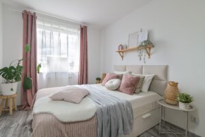 Duże okna zapewniają doskonałe doświetlenie wszystkich pomieszczeń, co sprawia, że mieszkanie jest słoneczne i bardzo przytulne. Dodatkowym atutem jest balkon, z którego roztacza się widok na zieleń i otwartą przestrzeń – bez bezpośredniego sąsiedztwa innych budynków, co zapewnia mieszkańcom prywatność i poczucie przestrzeni.