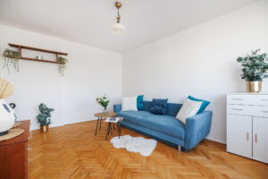 Mieszkanie jest jasne, przestronne i bardzo ustawne. Parkiet został wycyklinowany, dzięki czemu wnętrze prezentuje się bardzo estetycznie. Instalacje nie były wymieniane, jednak całość jest zadbana i gotowa do zamieszkania lub dalszej modernizacji według własnego pomysłu.