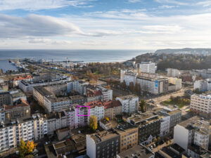 Lokalizacja zapewnia również doskonałą komunikację — w promieniu kilku kroków dostępne są przystanki autobusowe i trolejbusowe, a spacer do stacji Gdynia Główna zajmuje kilka minut.