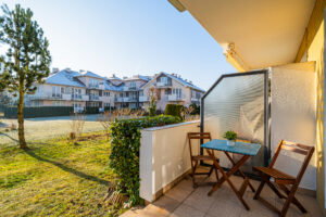 Osiedle, na którym którym znajduje się apartament położony jest zaledwie 600 m od morza, tuż przy osiedlu przebiega ścieżka spacerowa i rowerowa. Malownicza okolica sprzyja nadmorskim spacerom , przejażdżkom rowerowym i plażowaniu.