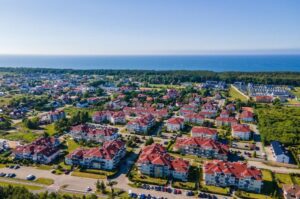 Osiedle Bałtyk to nowoczesne osiedle domów jednorodzinnych oraz budynków mieszkalnych zajmujące obszar aż 7 hektarów nadmorskiego terenu, gdzie znajdziecie Państwo przemyślany, funkcjonalny i estetyczny układ zabudowy, zapewniający wysoki standard życia i wypoczynku: teren jest ogrodzony i monitorowany przez całą dobę, niska zabudowa, w pełni zagospodarowany teren - trawniki, drzewa i krzewy, drogi wewnętrzne, parkingi i chodniki oświetlone nocą, infrastruktura rekreacyjna: plac zabaw dla dzieci, kort tenisowy, boisko, ogólnodostępny grill.