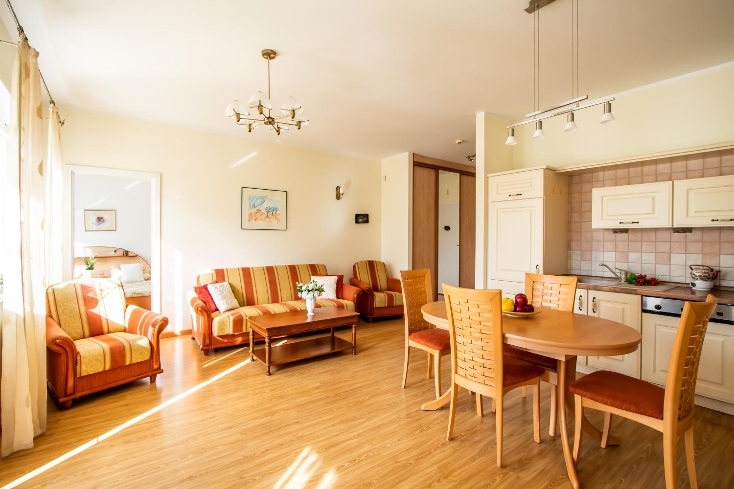 Wyjątkowo atrakcyjne dwu pokojowe mieszkanie apartamentowo - wczasowe, wyposażone i umeblowane.