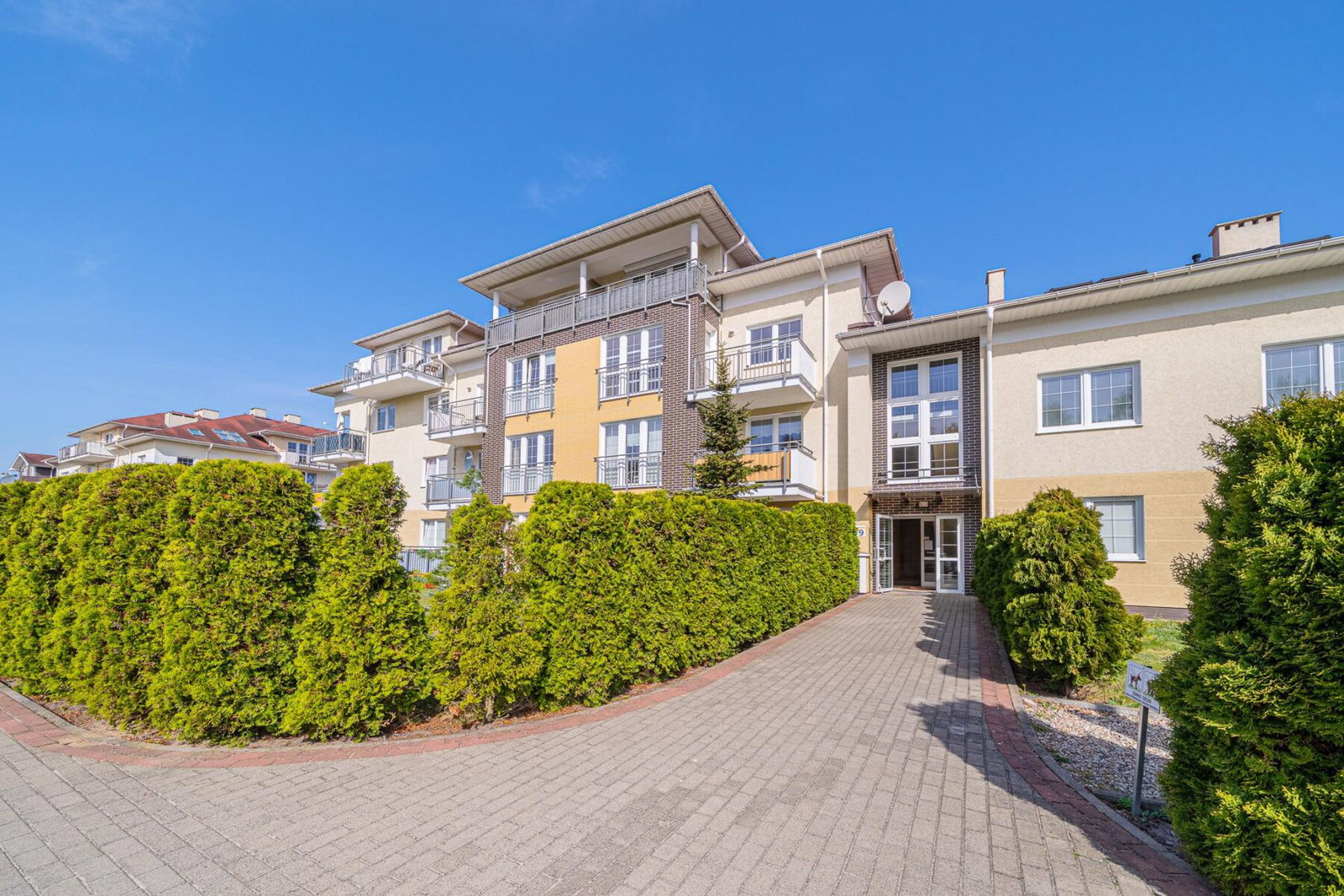 Apartament znajduje się na zamkniętym, strzeżonym osiedlu Bałtyk, zaledwie 600 m od morza. W pobliżu są sklepy, plac zabaw, las oraz niska zabudowa. Osiedle oferuje również tereny zielone, kort tenisowy i wiele miejsc parkingowych.