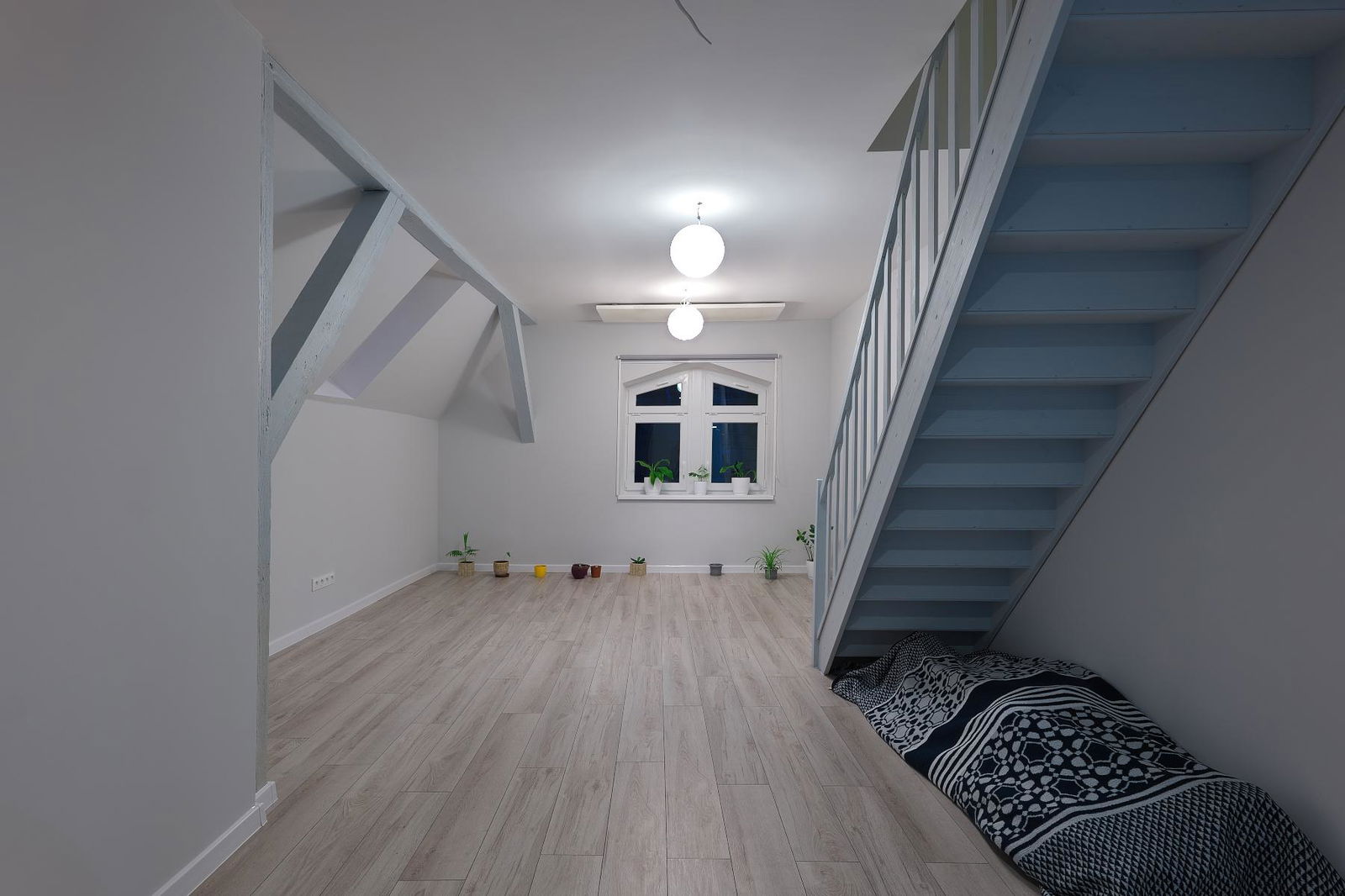 Mieszkanie o wysokości 2,65m jest ustawne i jasne - plastikowe okna wychodzą na stronę południowo-wschodnią. Na drugim poziomie są skosy, więc powierzchnia po podłodze jest znacznie większa od podanej.