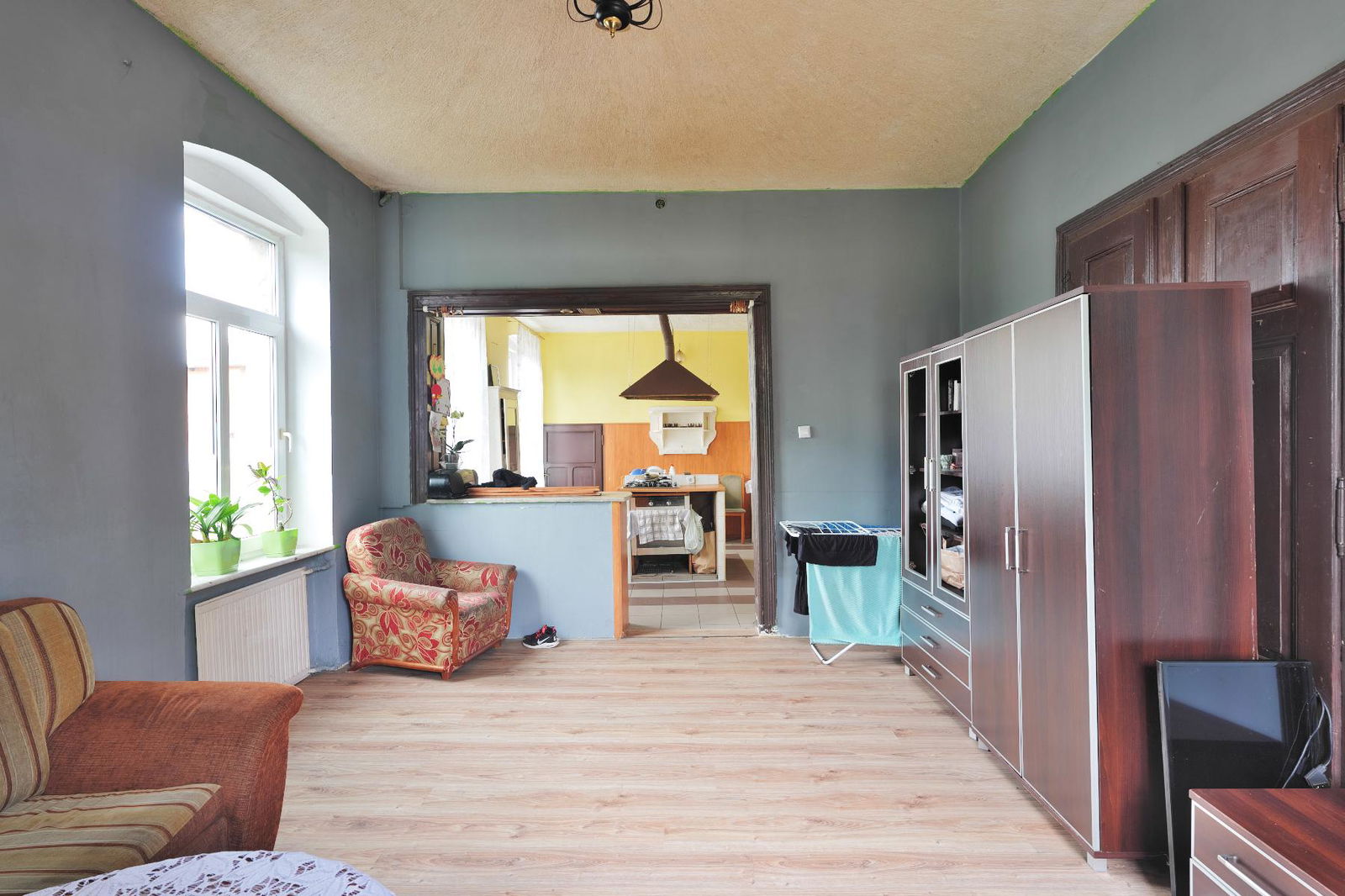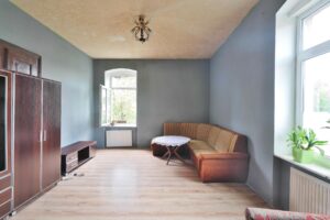 Całość wymaga remontu, ogrzewanie - piec centralny na węgiel, ciepła woda - bojler elektryczny. Wysokie sufity dają możliwość dowolnej aranżacji i duże poczucie przestrzeni.