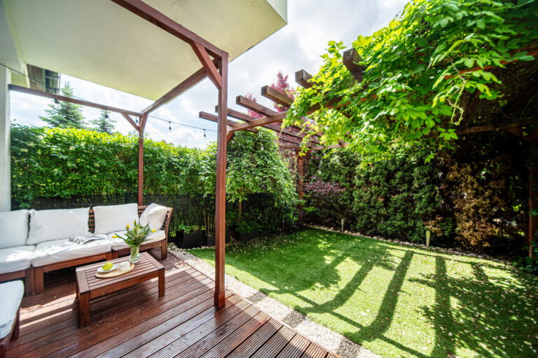 Przestronny taras 15 m2 umożliwia zaaranżowanie letniej strefy wypoczynku.