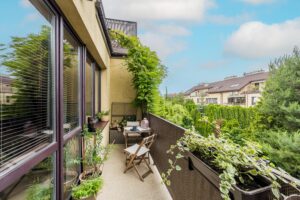 Wyjście na balkon sprawia wrażenie przedłużenia obszernego salonu.