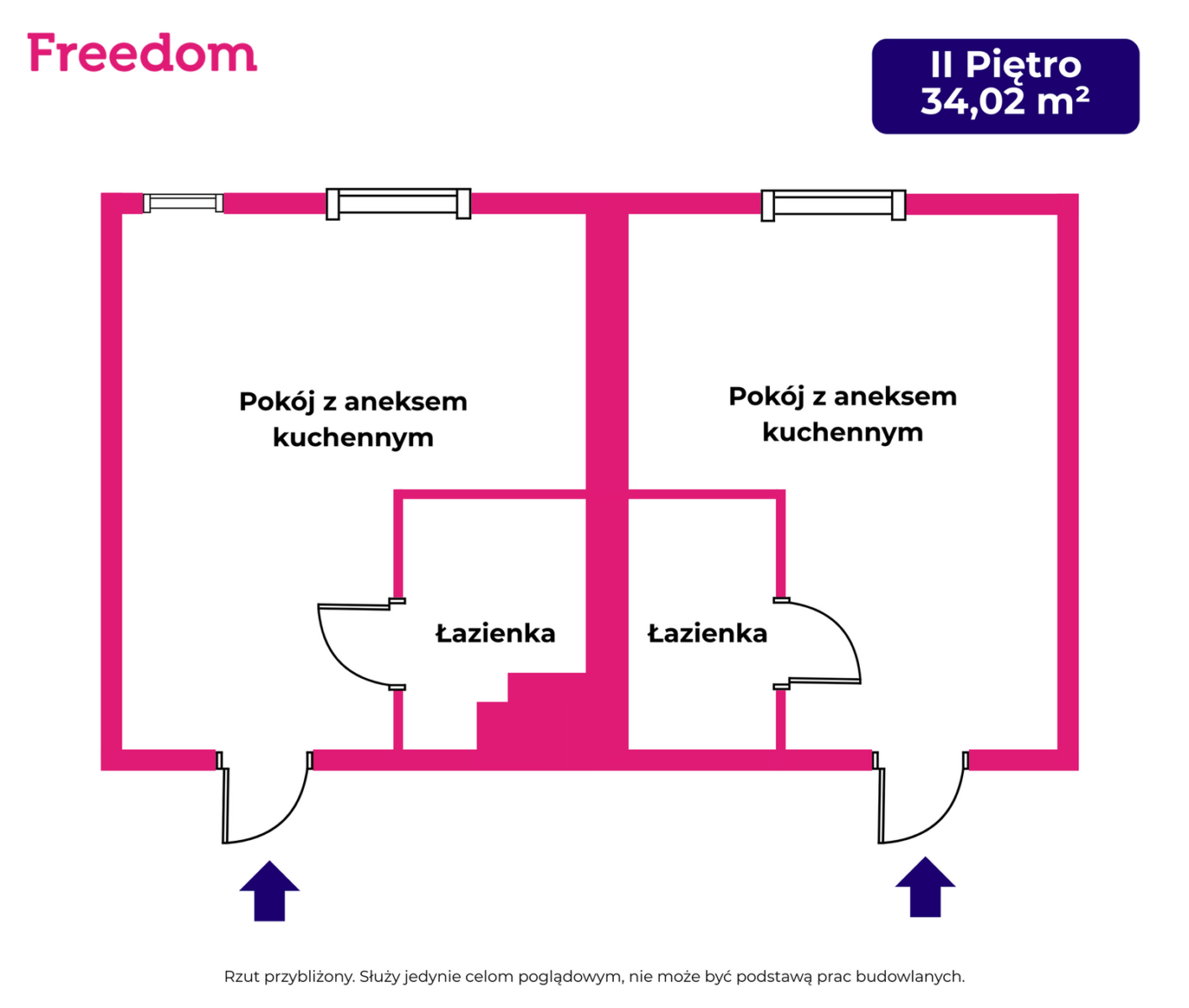 Mieszkanie składa się z dwóch niezależnych kawalerek, co czyni je idealnym rozwiązaniem dla inwestorów. Powierzchnia pokoi wynosi 26,4 m², a kuchnia jest w formie aneksu.