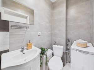 W cenie mieszkania pozostaje komplet mebli oraz sprzęt AGD, więc nie musisz nic dokupywać, aby móc od razu wynająć lub zamieszkać w lokalu.
