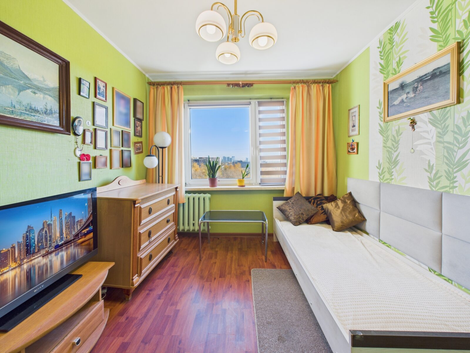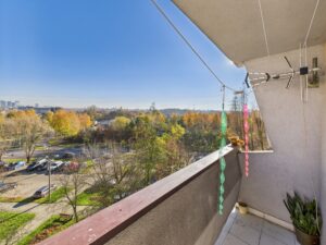 Z balkonu rozciąga się piękny widok na panoramę miasta, który sprawia, że mieszkanie jest wyjątkowo jasne i klimatyczne.