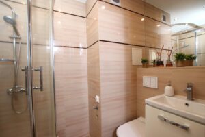 - Podłogi w pomieszczeniach: Płytki, Panele