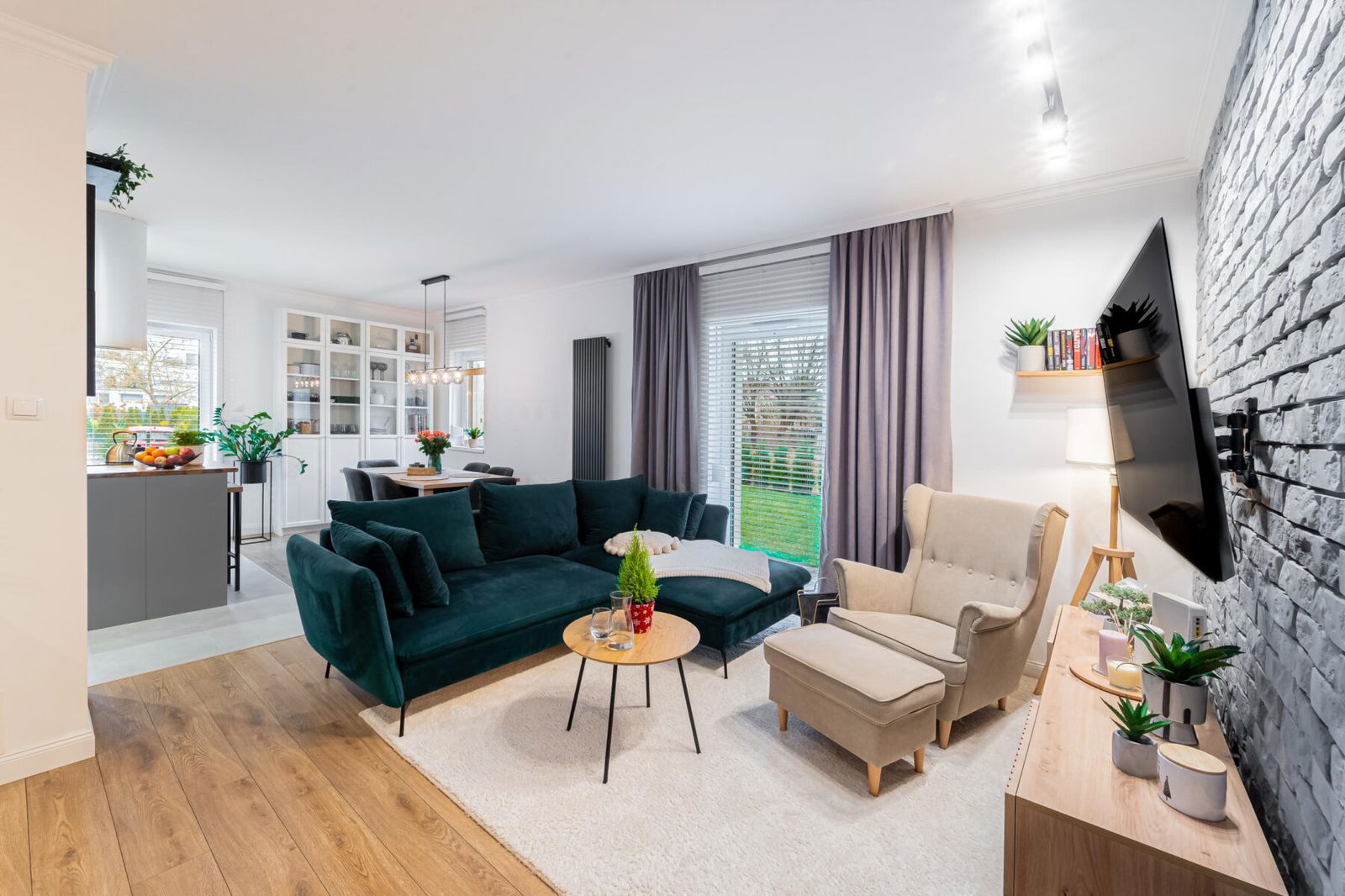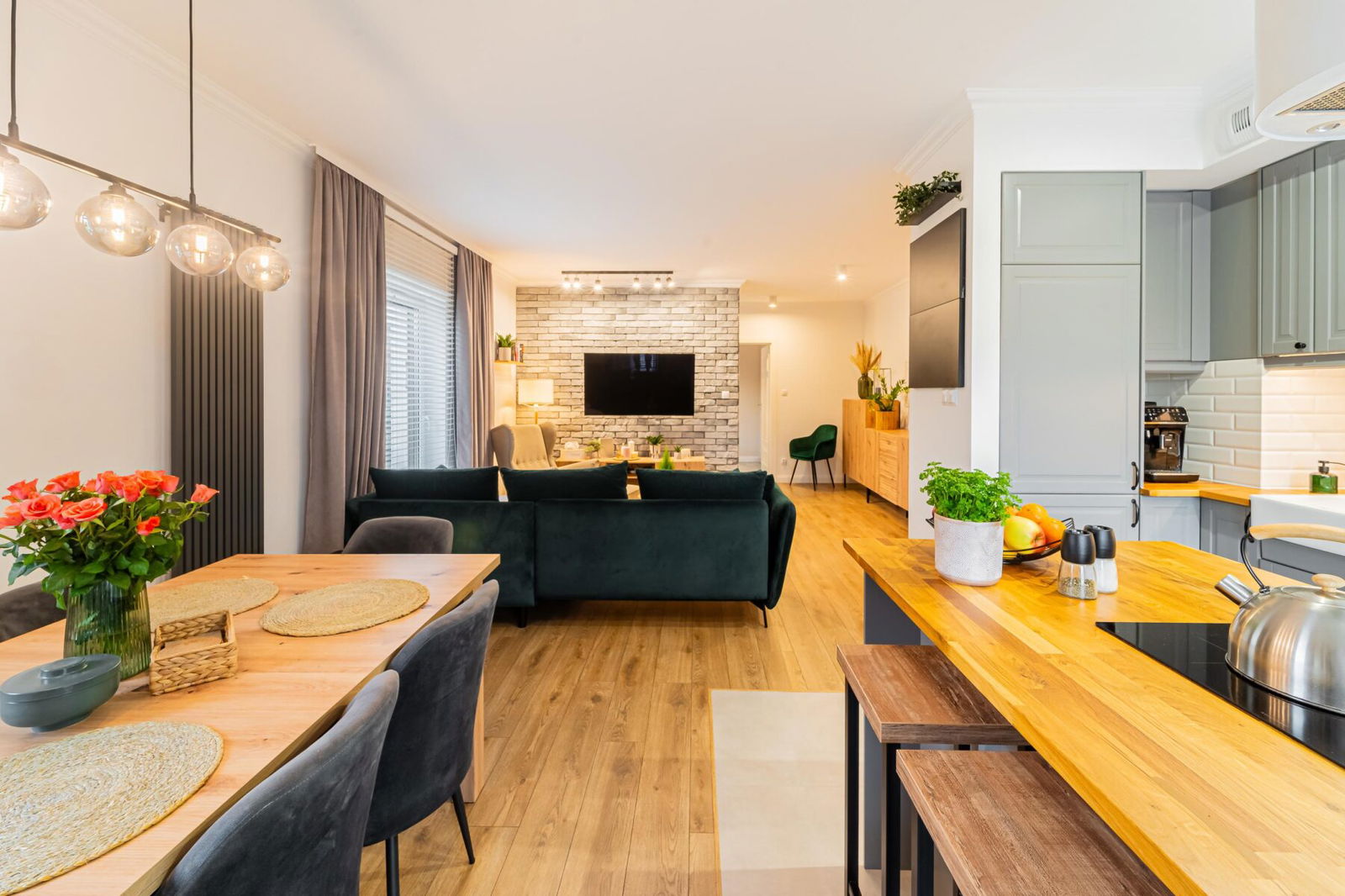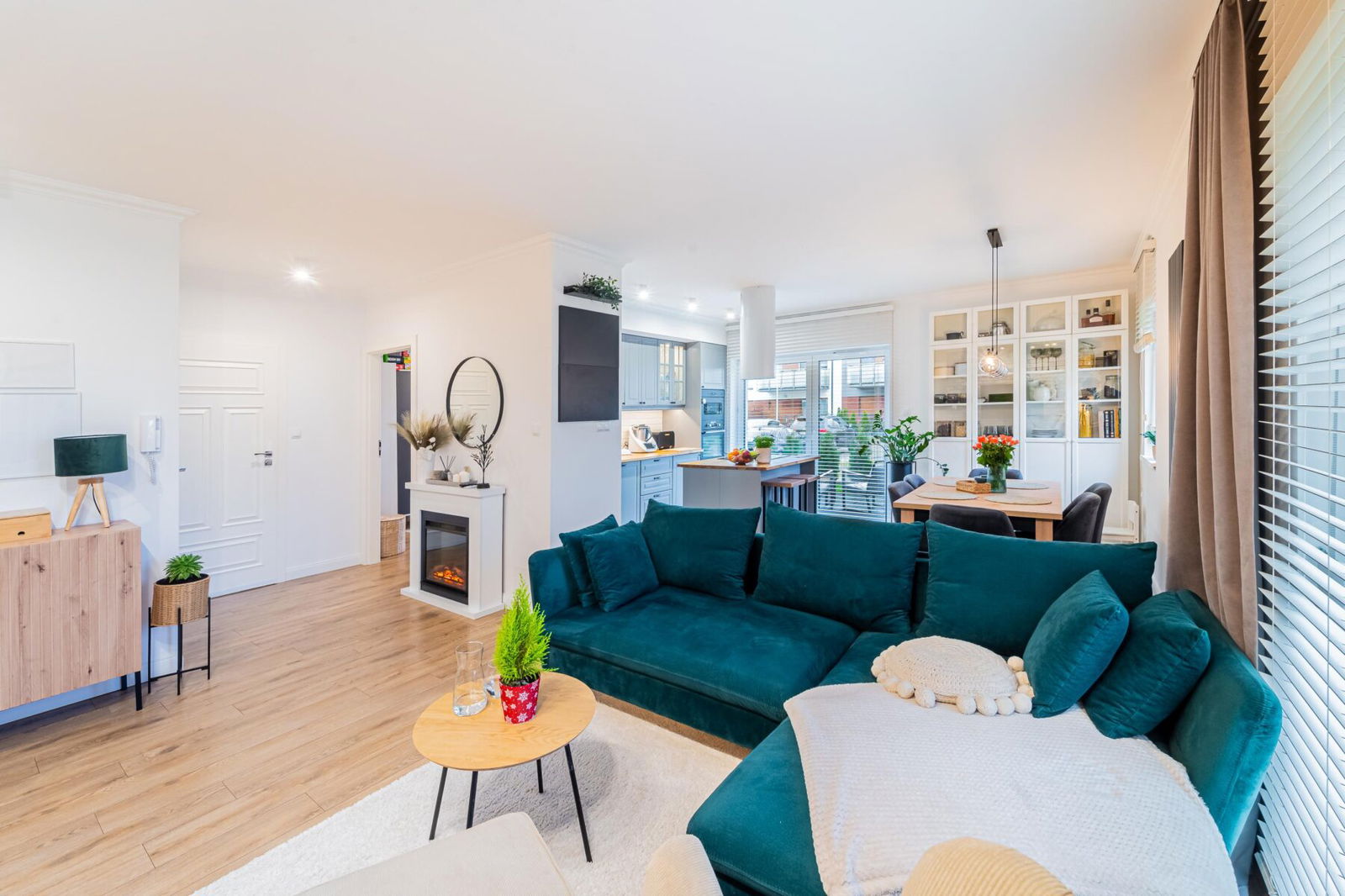 Zostało wykończone przy użyciu wysokiej jakości materiałów oraz umeblowane niezwykle gustownie i nowocześnie. Ogrzewanie podłogowe w kuchni i łazience jest bardzo komfortowe, a zewnętrzne rolety antywłamaniowe zapewniają bezpieczeństwo.