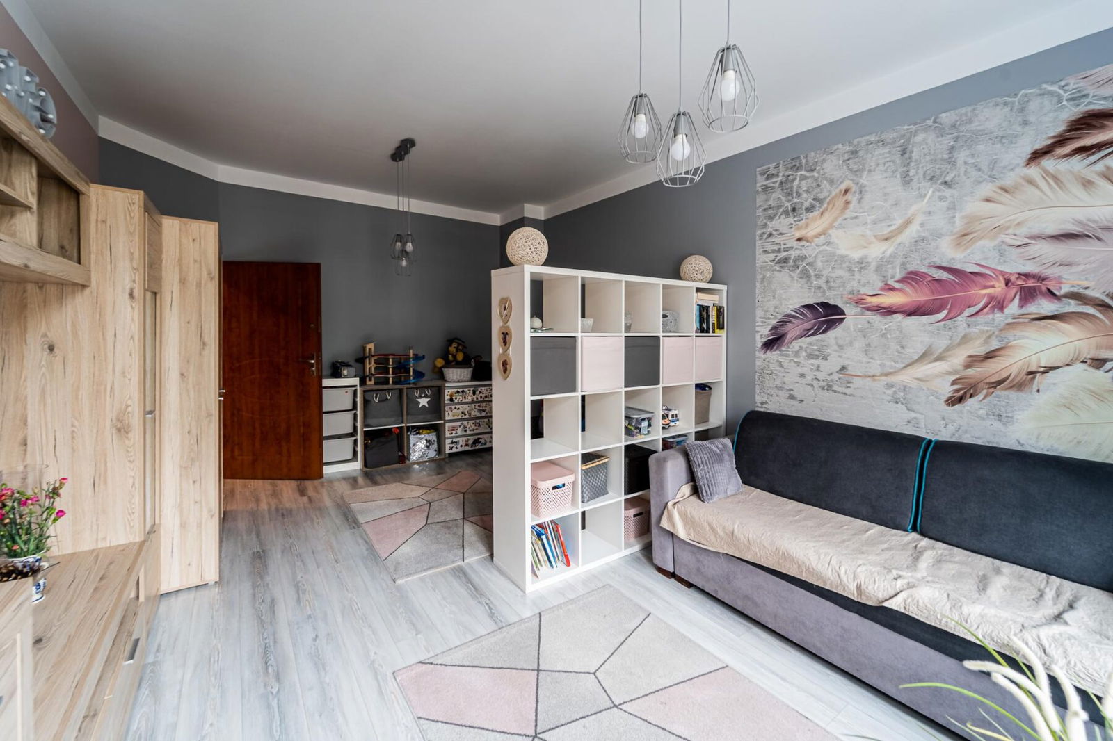 - Podłogi w pomieszczeniach: Panele