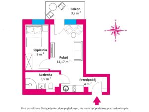 Uwaga możliwość przeprojektowania apartamentu na dwupokojowy z aneksem kuchennym w przedpokoju (w załączeniu rzut projektu adaptacji)