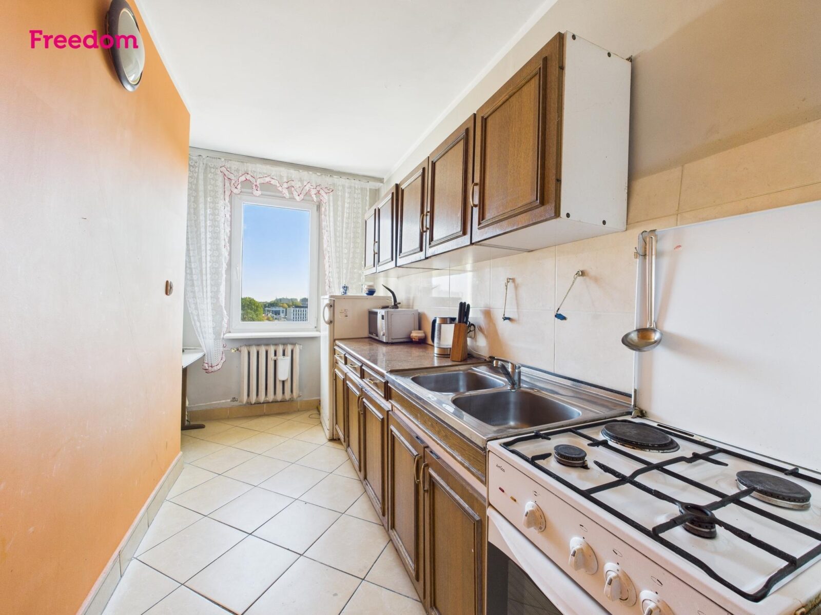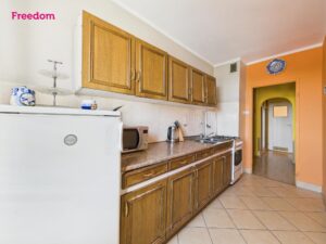 Mieszkanie jest do remontu – to czysta karta dla Twojego stylu i materiałów. Obecnie w pokojach znajdują się panele, w kuchni, łazience i korytarzu płytki. Łazienka wyposażona w kabinę prysznicową, umywalkę i oświetlenie punktowe pozwala komfortowo funkcjonować na czas planowania prac. Kuchnia z oknem i widokiem – pełna długość zabudowy, wygodne blaty, miejsce na jadalniany stolik przy oknie. W przedpokoju pozostaje duża, praktyczna szafa; do dyspozycji także balkon z markizą – w słoneczne dni tworzy dodatkowy, zaciszny mikro-taras.