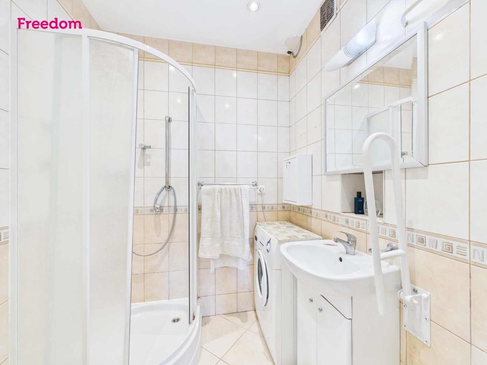 Mieszkanie jest do remontu, co daje możliwość dostosowania wnętrza do własnych potrzeb i stylu. Obecnie w pokojach znajdują się panele, a w kuchni, łazience i korytarzu płytki. Łazienka jest wyposażona w kabinę prysznicową, umywalkę oraz miejsce na pralkę.