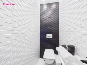 Trzy niezależne pokoje dają szerokie możliwości aranżacyjne – od wygodnej sypialni, przez pokój dziecięcy, po funkcjonalny gabinet do pracy. Dodatkowym atutem jest praktyczna garderoba o powierzchni ponad 2 m2, która pozwala zrezygnować z dużych szaf w sypialniach i utrzymać porządek w całym mieszkaniu.