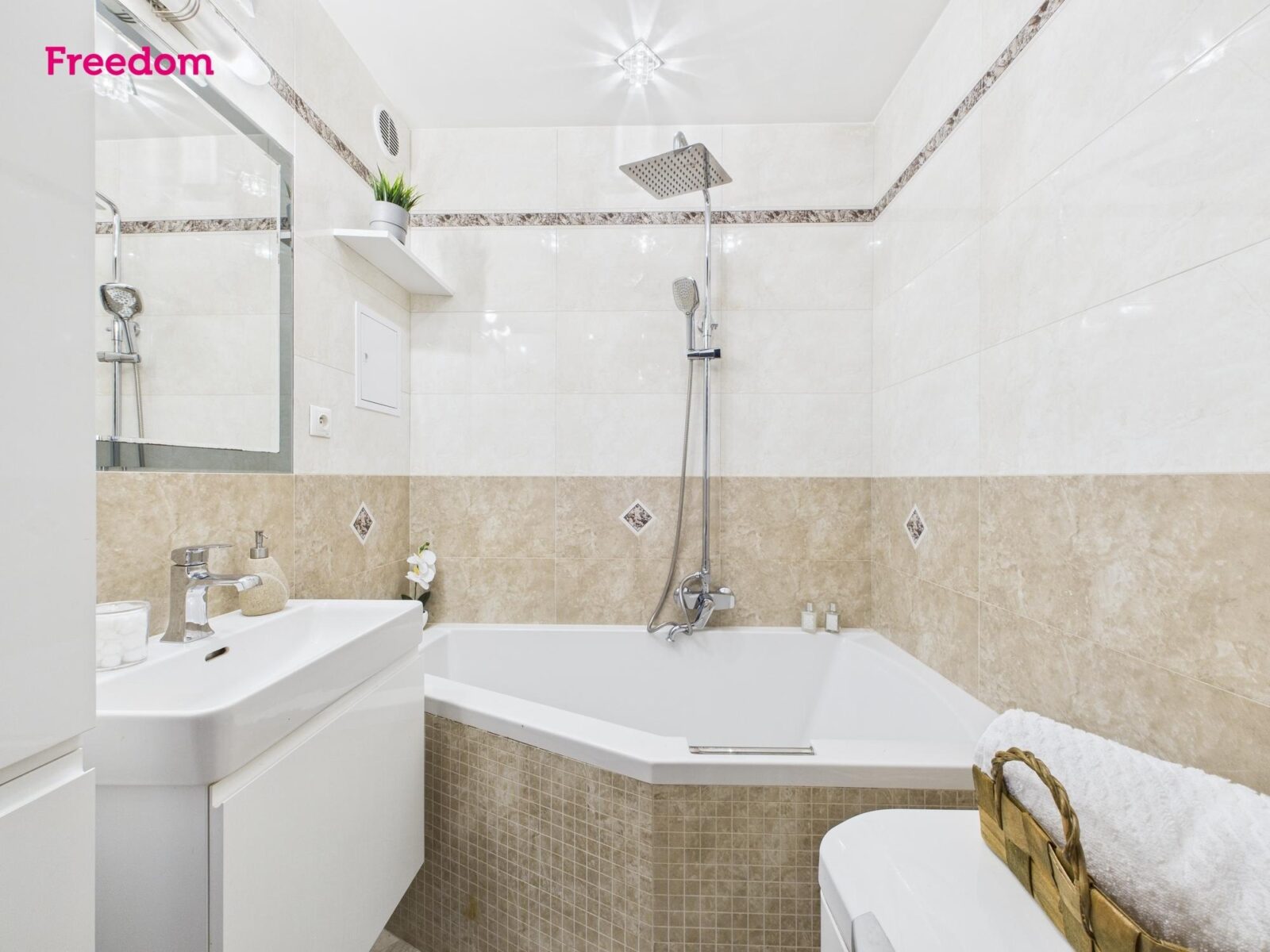 W mieszkaniu znajduje się także łazienka, oddzielna toaleta oraz przestronny przedpokój z miejscem na szafę w zabudowie. Taki układ jest idealny zarówno dla rodziny z dziećmi, jak i dla pary ceniącej przestrzeń i wygodę.