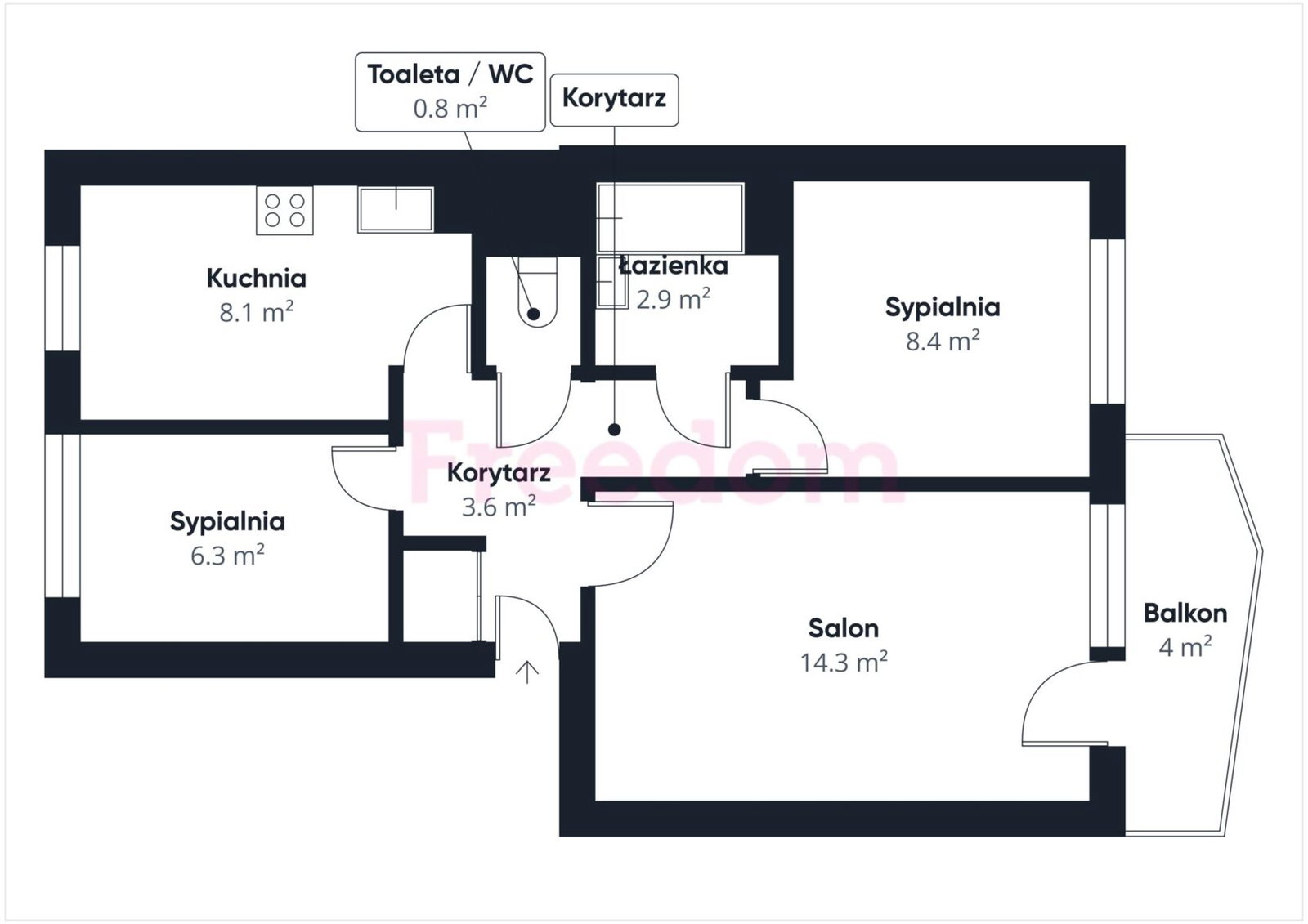- Powierzchnie pokoi: 14,3+8,4+6,3