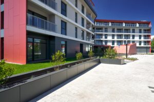 Do sprzedaży w 5 kondygnacyjnej bryle oferujemy 71 apartamentów mieszkalnych oraz 34 apartamenty usługowe z uzgodnieniami takimi jak bawialna, basen, siłownia, strefa SPA czy centrum konferencyjne.