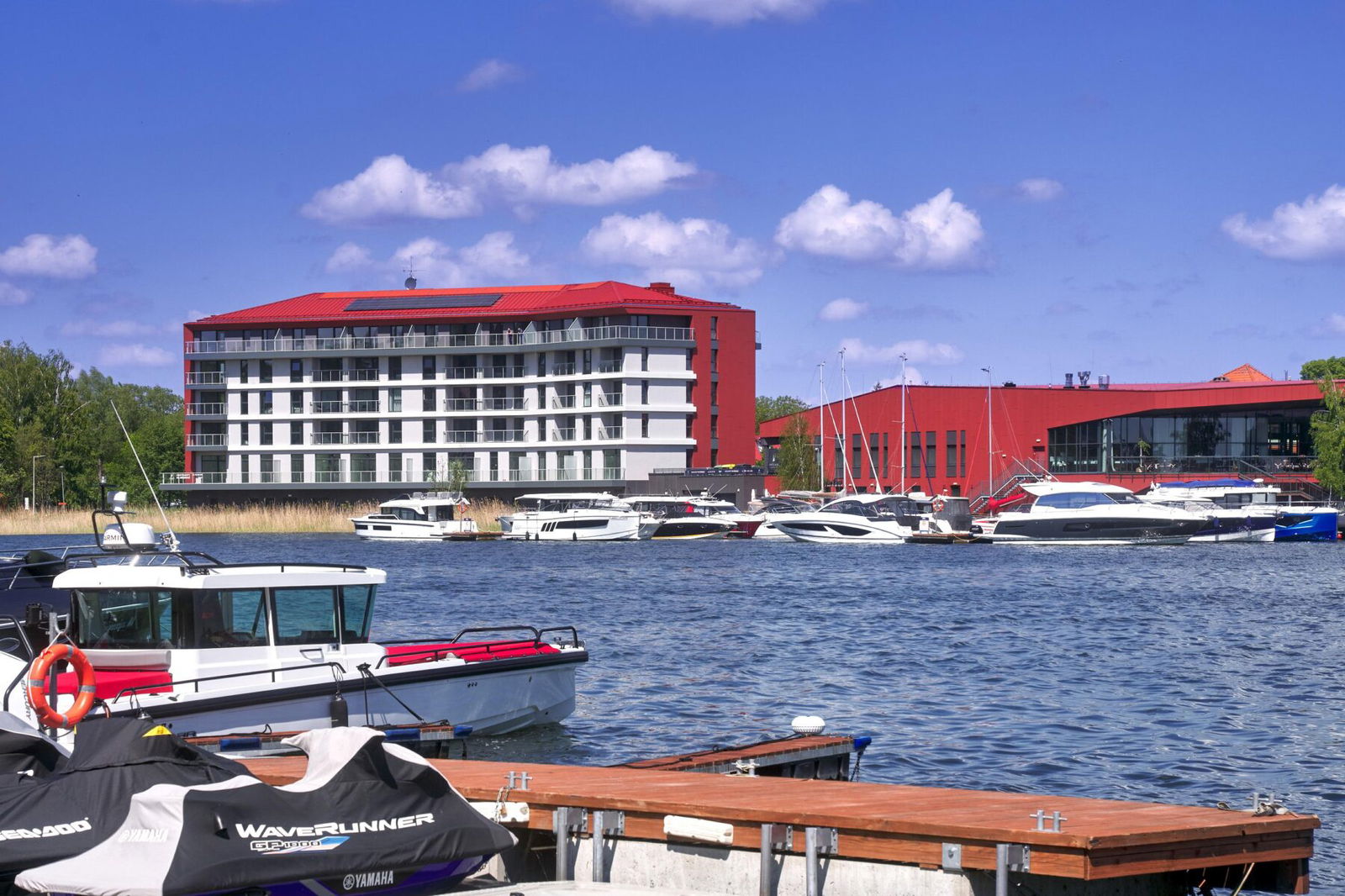 – Budynek apartamentowy wyposażony jest w windę, balkon oraz halę garażową. Dodatkowo, mieszkańcy mają dostęp do nowoczesnej przystani, basenu, siłowni, strefy SPA oraz centrum konferencyjnego.