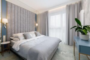 Apartamenty o zróżnicowanych powierzchniach od 29,48 m2 do 52,07 m2 są w pełni wyposażone, urządzone i gotowe do użytkowania i zamieszkania. Apartamenty posiadają jedną lub większą ilość sypialni, gdzie można odpocząć i zrelaksować się po dniu pełnej aktywności. Sypialnie są ciche i przytulne, a ich design sprzyja dobremu samopoczuciu i błogiemu wypoczynkowi.