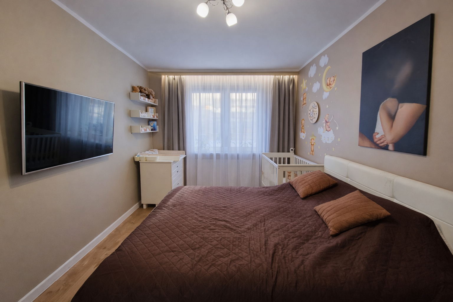 Pokój 2 - sypialnia z dużą zabudowaną szafą
