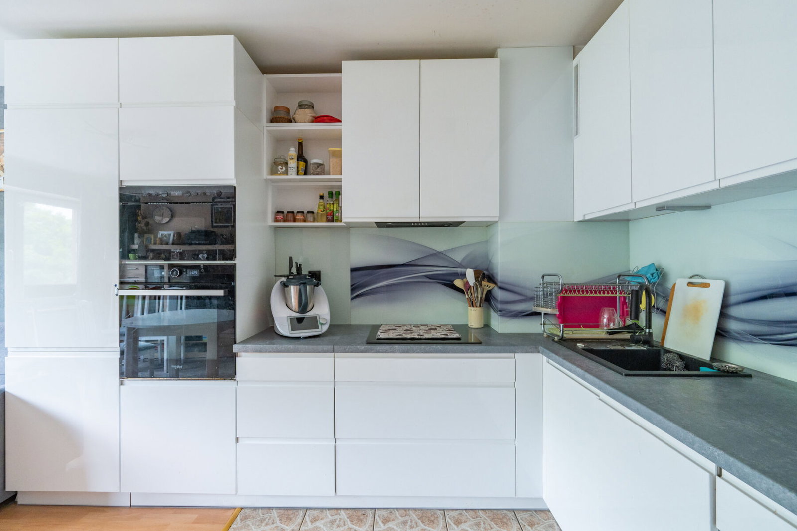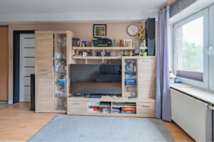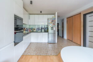 Jest w dobrym stanie technicznym, do zamieszkania od zaraz lub do ewentualnego odświeżenia. Na wyposażeniu m.in. pralka, lodówka, zmywarka, piekarnik, mikrofalówka, kuchenka (płyta indukcyjna).
