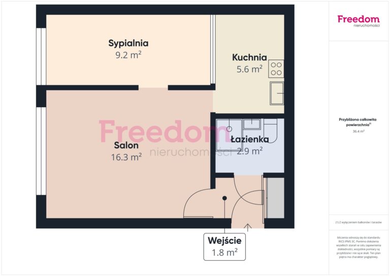Mieszkanie ma powierzchnię 43 mkw i składa się z pokoju z aneksem kuchennym, przytulnej sypialni oraz łazienki. Dodatkowo, posiada duży balkon z pięknym widokiem na okolicę.