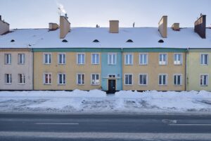 Mieszkanie ma powierzchnię 50,3 m2 i składa się z dwóch pokoi oraz dużej kuchni. Znajduje się na pierwszym piętrze.