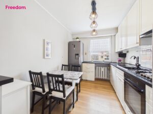 Widna kuchnia (7,6 m²) zapewnia wygodę codziennego gotowania, łazienka i oddzielna toaleta zwiększają komfort domowników. Do dyspozycji pozostaje również piwnica. Parkiet, panele i płytki tworzą praktyczne i estetyczne wykończenie, a całość jest w bardzo dobrym stanie – mieszkanie gotowe do zamieszkania.