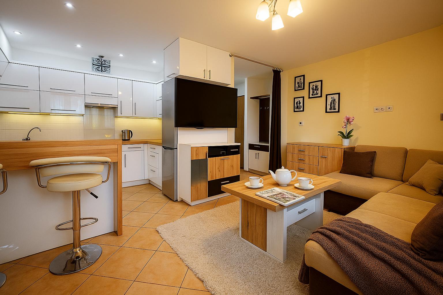 ✔ Salon z aneksem kuchennym – gotowy na domowe przyjęcia