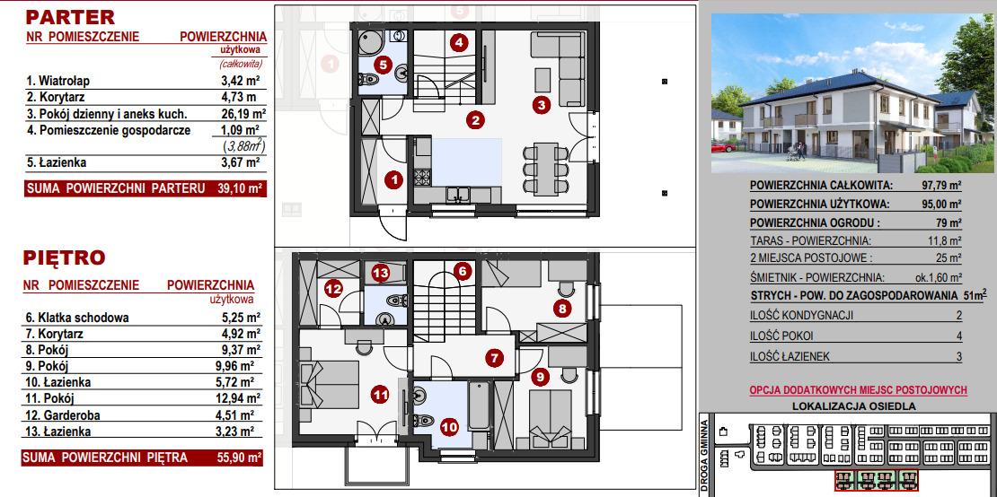 Proponowana inwestycja to dwa rodzaje układów mieszkalnych – każdy z osobnym wejściem, klatką schodową/wiatrołapem i furtką wejściową, co zapewnia zarówno dyskrecję jak również komfort użytkowania. Dodatkowo wszystkie lokale mieszkalne znajdujące się na parterze posiadają pomieszczenie gospodarcze oraz ogródek z zadaszoną grillownią. Wszystkie lokale górne oprócz tarasu, posiadają również ogródek z zadaszoną grillownią oraz poddasze. Wszystkie wymienione atuty domu otrzymasz w cenie mieszkania.
