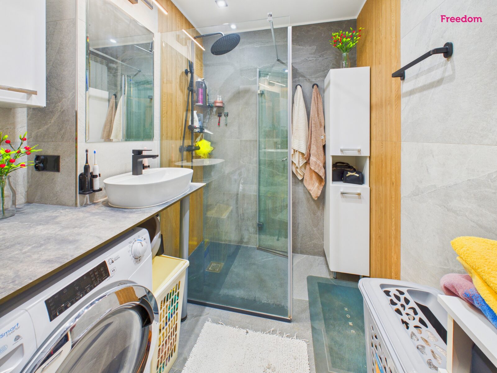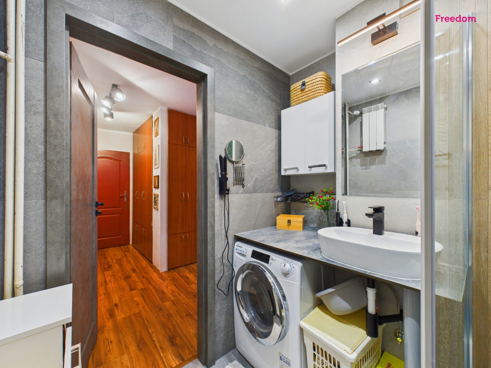 - Łazienka z kabiną prysznicową i oddzielne WC
