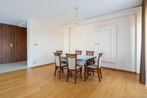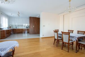 – Apartament jest w idealnym stanie, wykończony z najwyższej jakości materiałów. Podłogi wykonane są z litego drewna dębowego, a kuchnia jest w pełni wyposażona w sprzęt AGD. Mieszkanie jest częściowo umeblowane, co pozwala na dostosowanie wnętrza do własnych potrzeb.